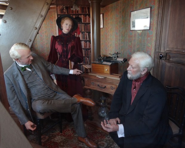 Paris, of course, has some amazing buildings. The Eiffel Tower has Gustave Eiffel’s private apartment right at the summit. Here he’s with his daughter Claire, being visited by Thomas Edison.
