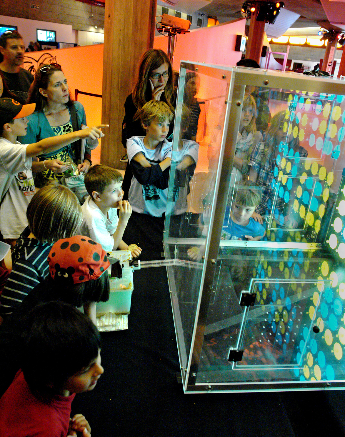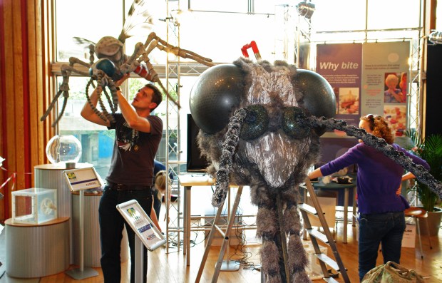 The mosquitos weren’t flying free – a whole host were in a perspex sphere. There was an opening, covered in mesh, where you could put your hand to test your attractiveness. Some people drew hundreds …