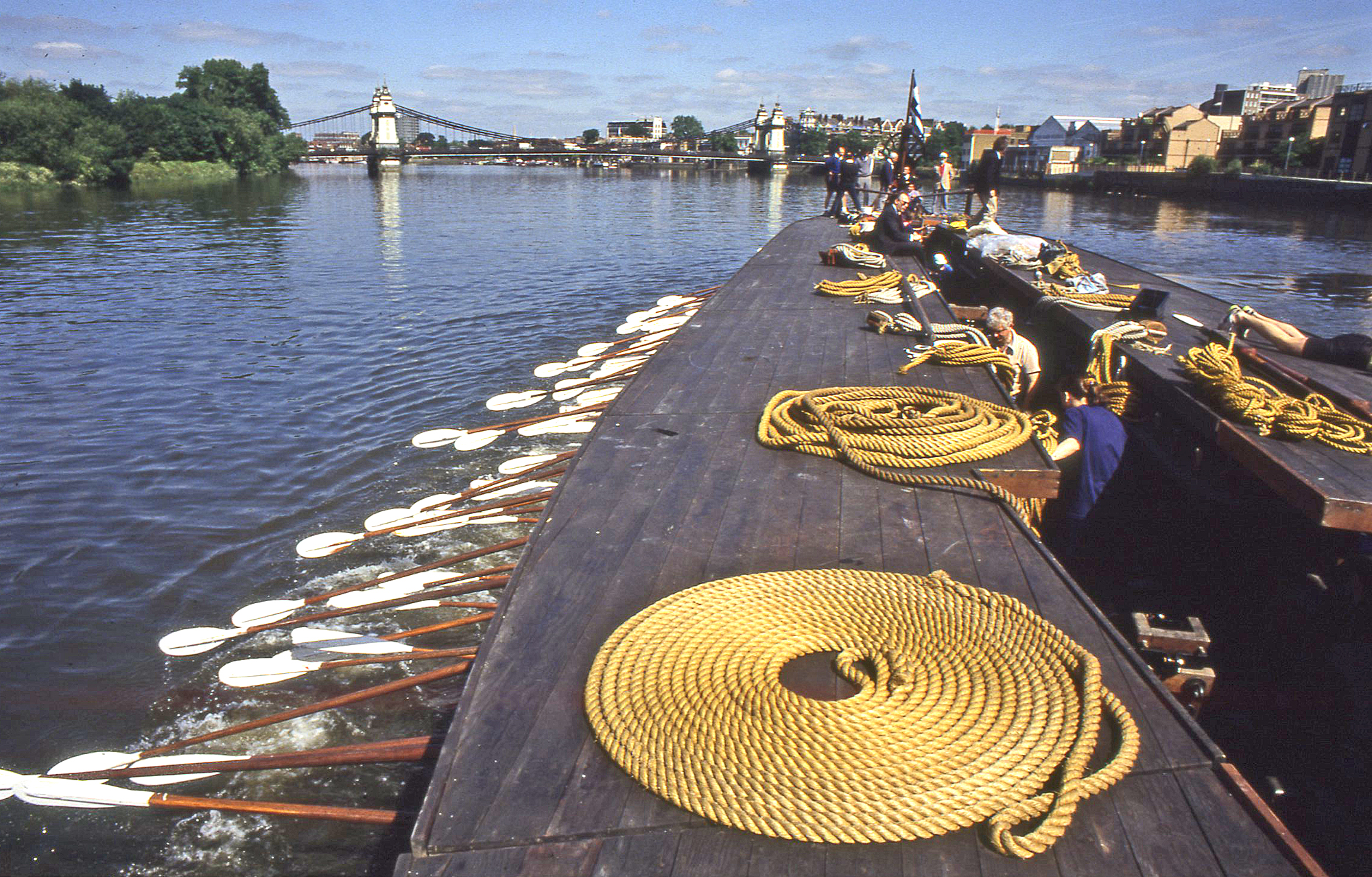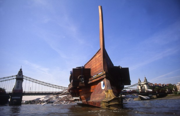 The Prince Regent lived in the nineteenth century, but the Athenian triremes come from the Greece of two and a half thousand years ago. Olympias is a modern reconstruction, and when she visited London she was a spectacular sight on the Thames.