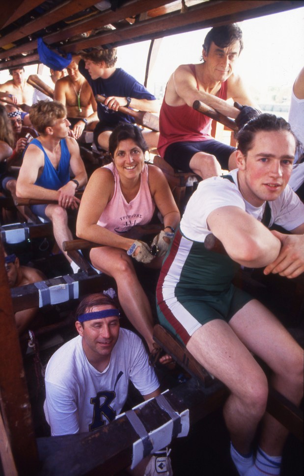 Not quite as heavy as the rowers’ efforts, though. Three banks of oarsmen on each side. Obviously the ancient Greeks would have employed men exclusively, but Olympias has an international crew of both male and female rowers.