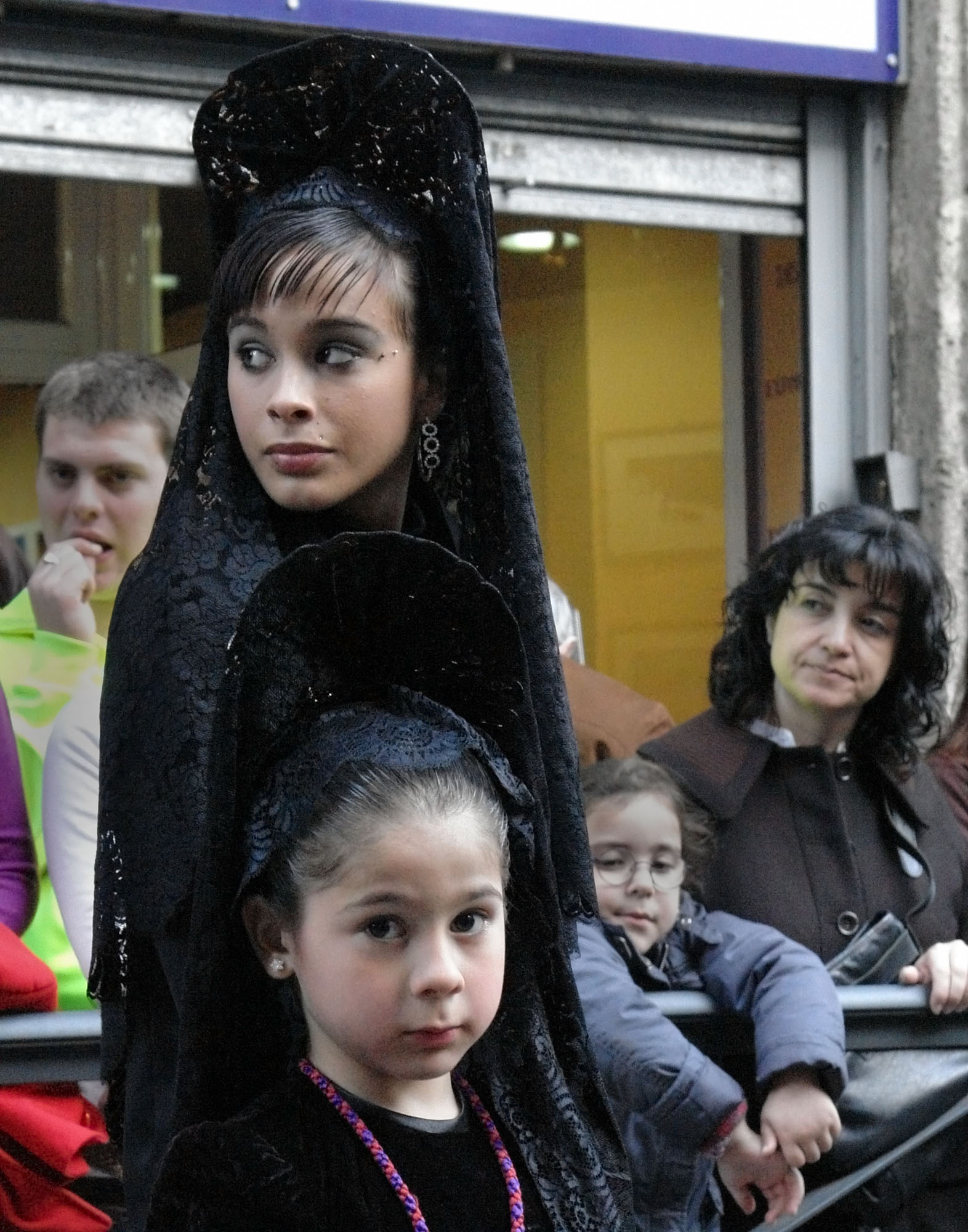 Young women dressed in mourning, as well as the older ladies above.