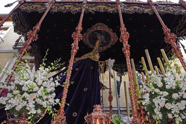 Hugely ornate floats carry the statues out of the churches.