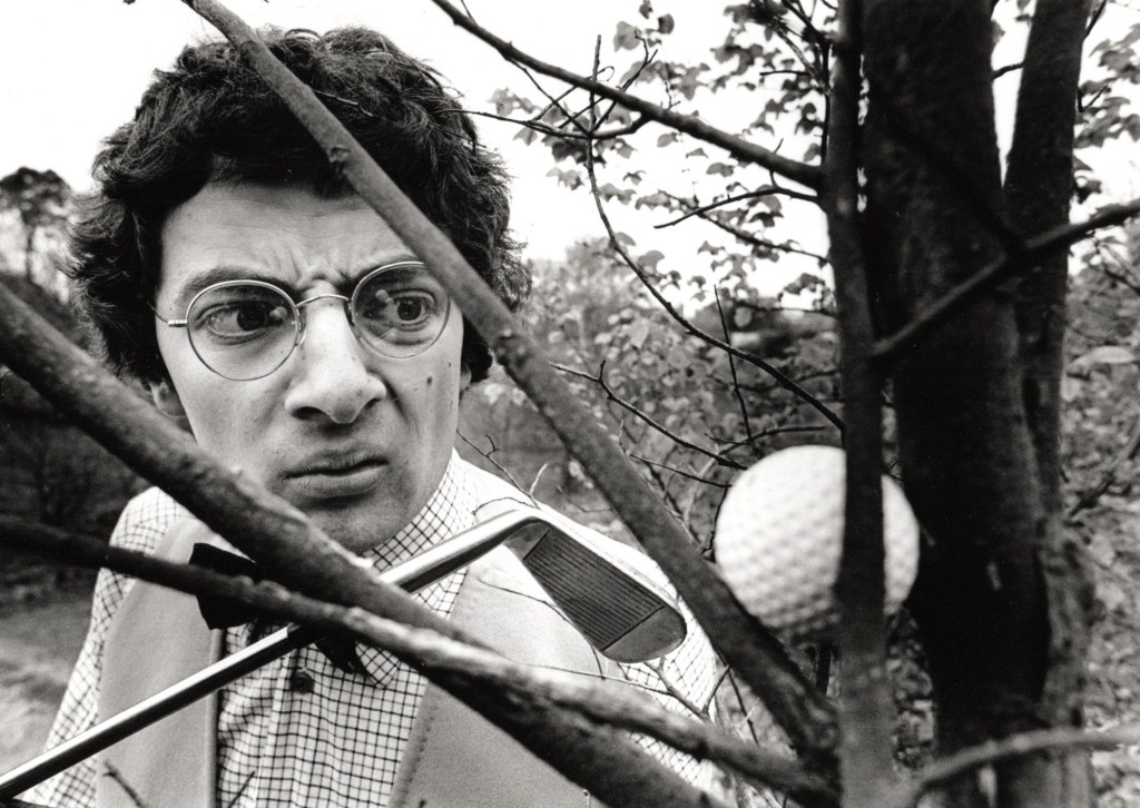 Here’s a young Rowan Atkinson playing golf . . .