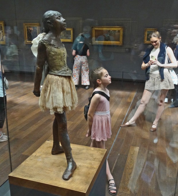 A much happier moment in Paris, where I glimpsed a young admirer of Degas’ ballerina at the Musée d’Orsay.