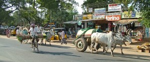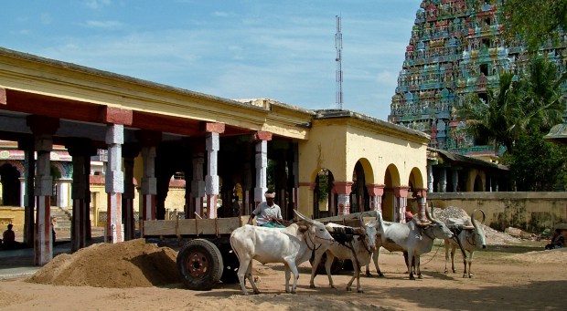 There’s a constant juxtaposition of ancient and modern, hi-tech and traditional. Like a radio mast sited next to a temple – and civil engineering projects with building materials hauled by oxen …