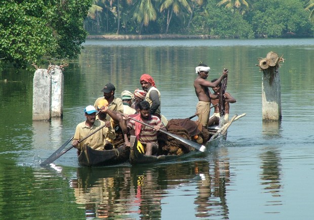 Talking of the sea, here’s the entrance channel to Kochi, the modern name of Cochin, situated on the inland Backwaters of Kerala. They fish from traditional boats – but also using enormous nets that they dip into the water …