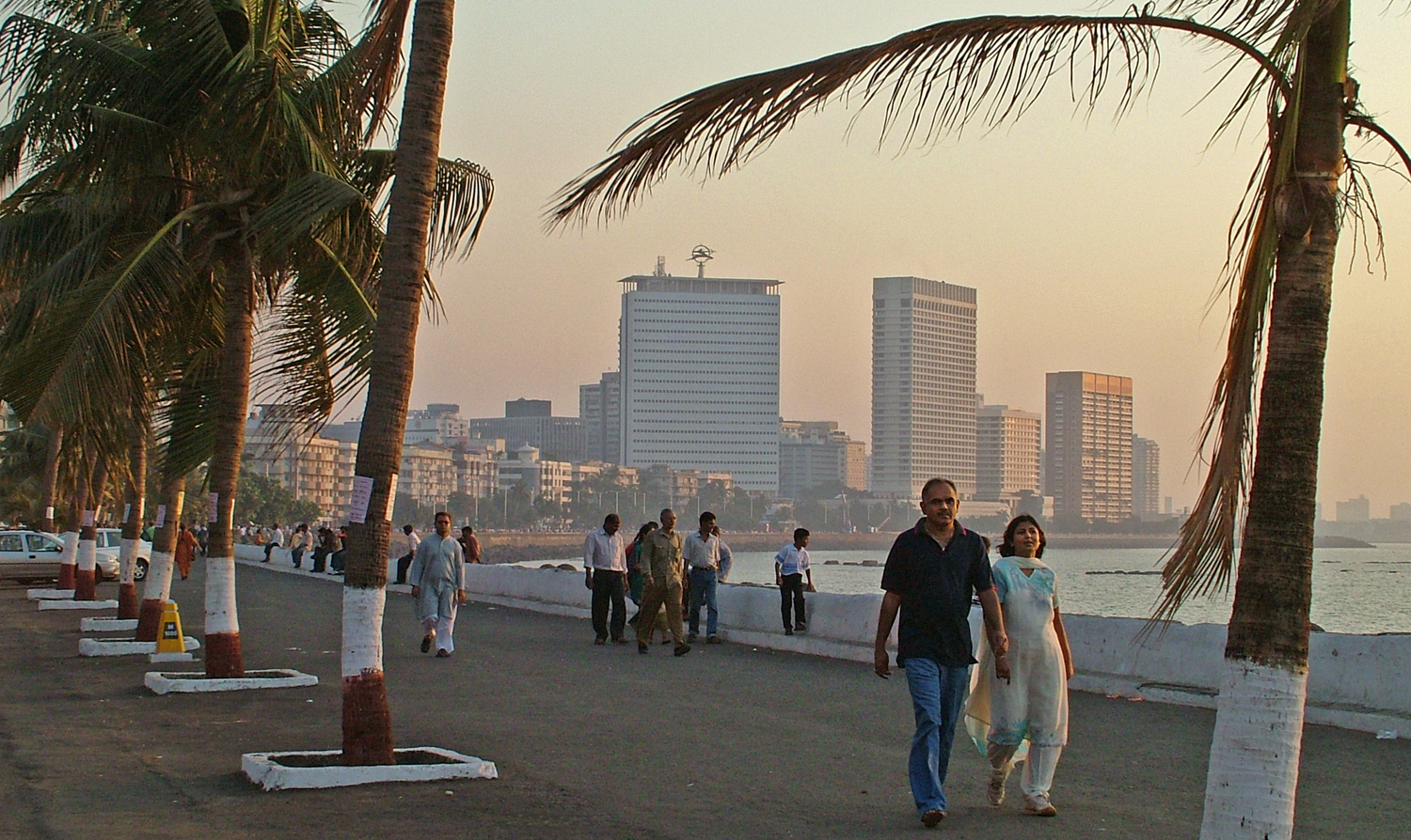 The cool of evening shows off the elegance of Marine Drive, the corniche in Mumbai, but in the smaller towns and backstreets there’s constant bustle and overcrowding.