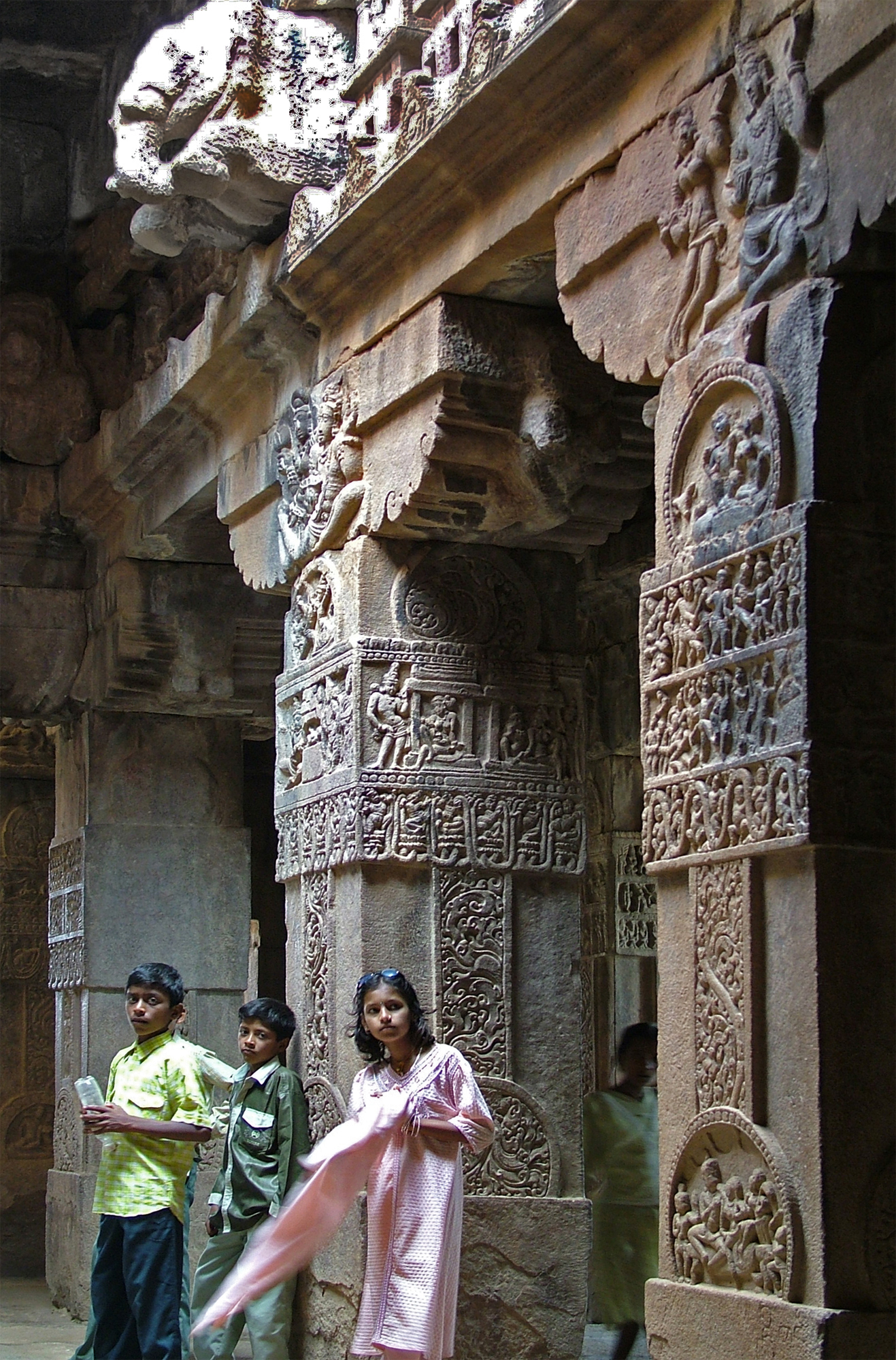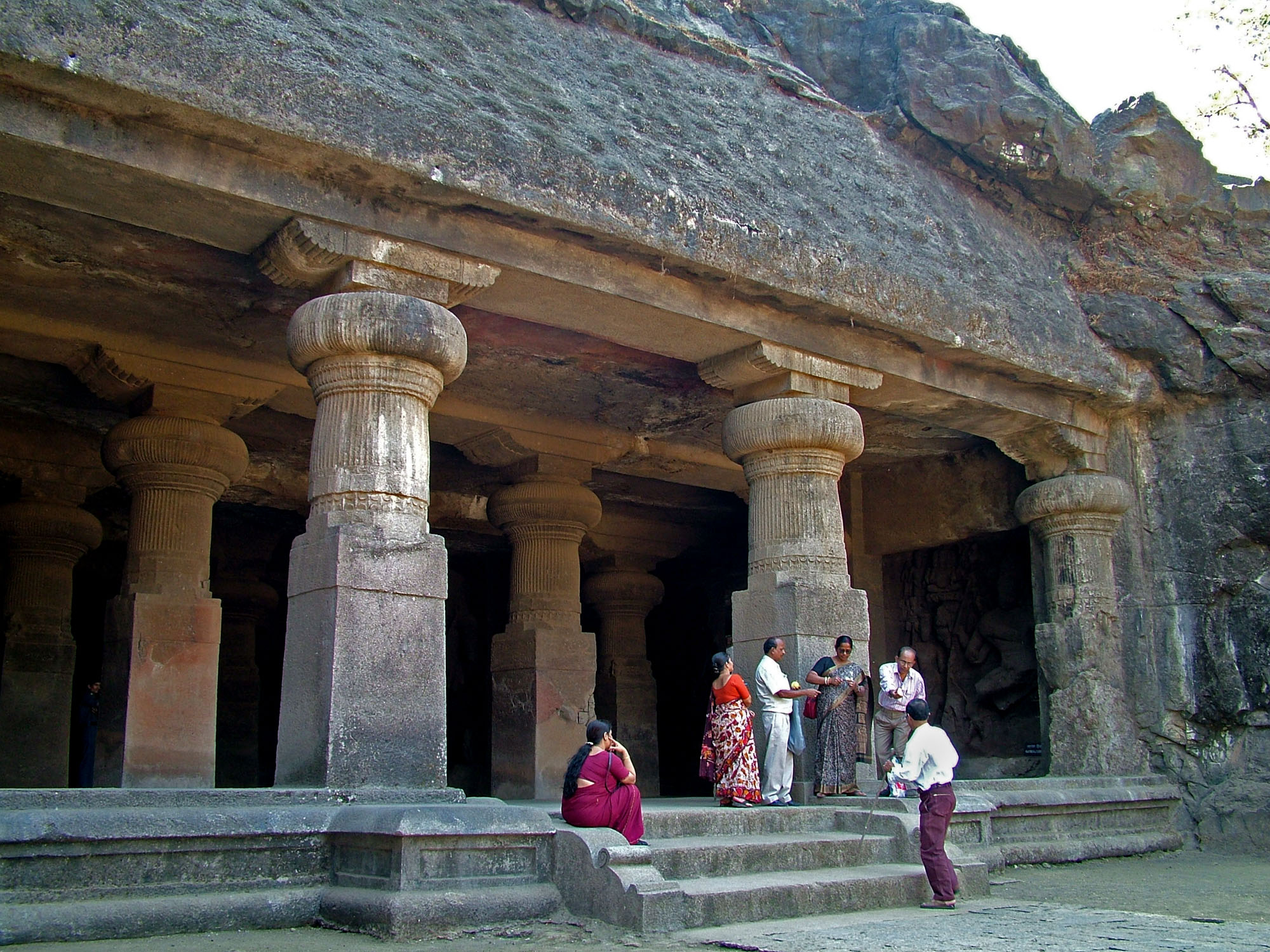 Or deep underground. Six centuries after Christ, many vast temples to the Hindu god Shiva were carved into the solid basalt of rocky hillsides. This example is on Elephanta Island, east of Mumbai.