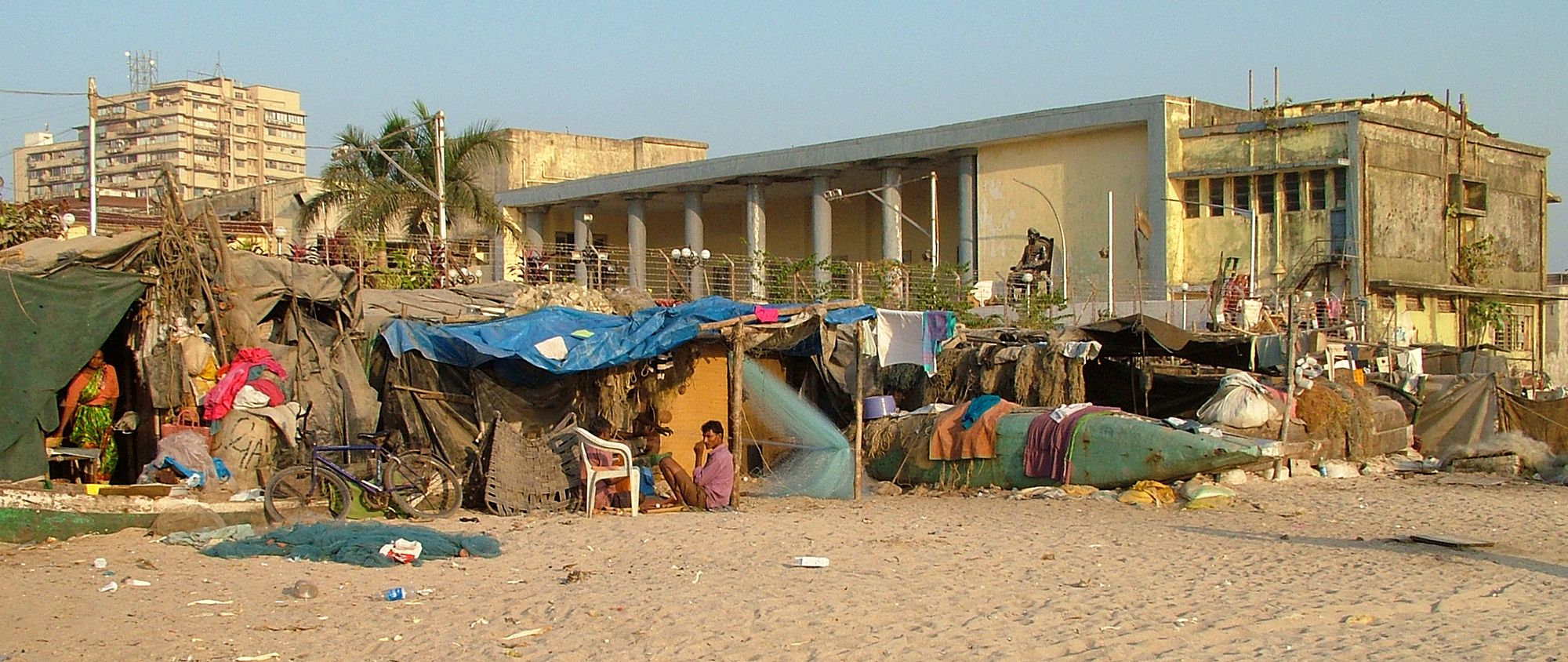 Wealth and poverty too, side by side. The shanty dwellings on Mumbai’s Chowpatty Beach overlook the windsurfers in the bay.