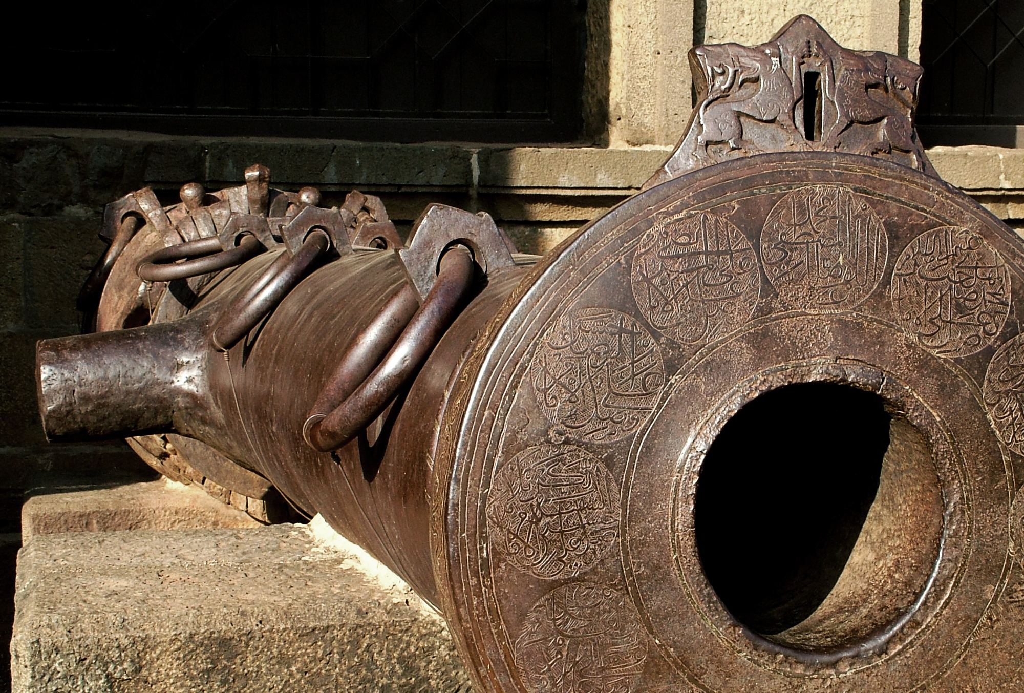 The Mughal emperors, being Islamic, had no human or animal imagery – their religion celebrated The Word itself. Calligraphy on cannons as well as buildings.