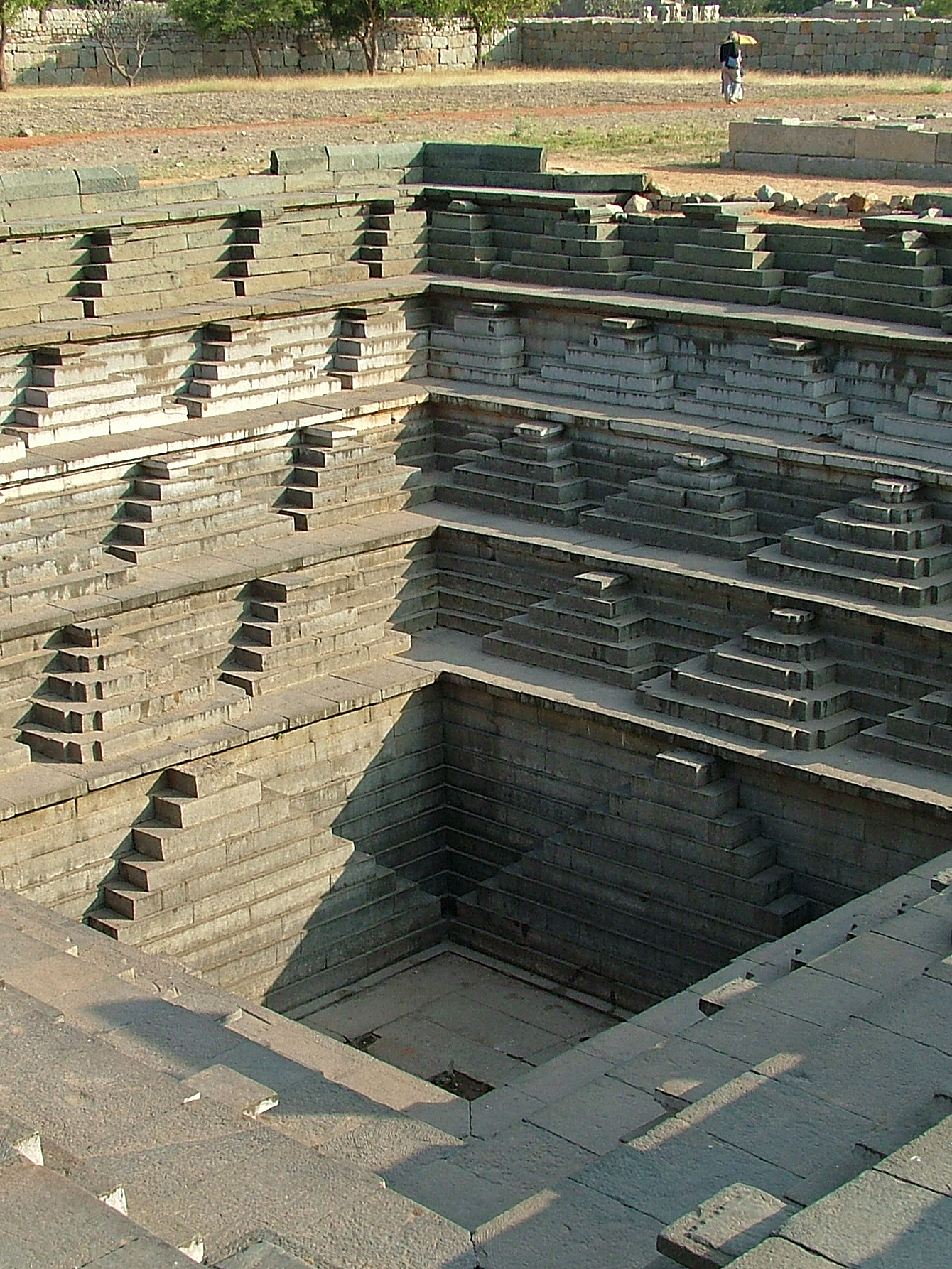The lake in front of the temple isn’t just for ornament – it’s the surface of a ‘tank’ for storage of large amounts of water. Traditional Indian water management built ‘stepwells’, designed to provide access for people to climb down, while the British Raj built dams.